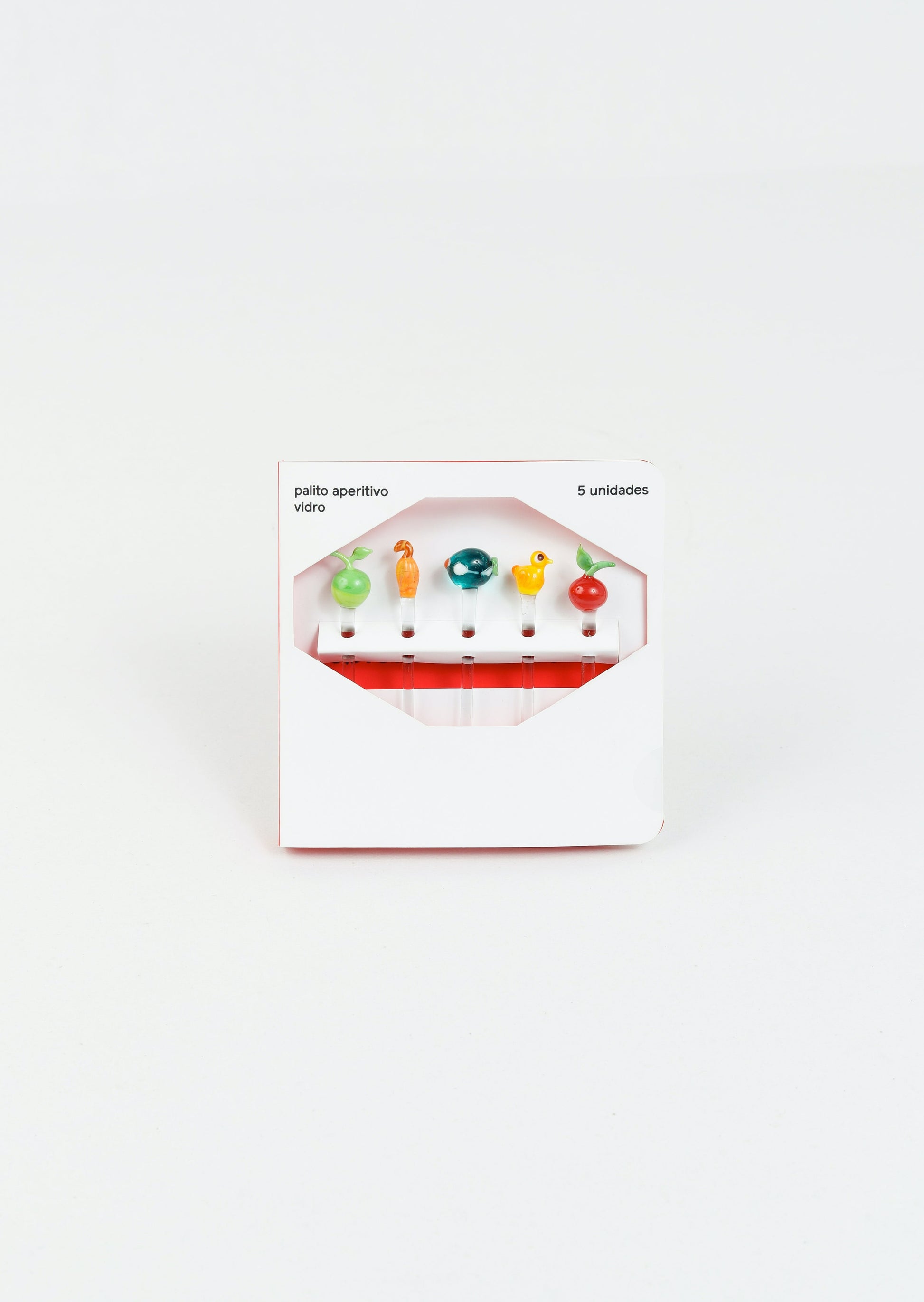 Adicione um toque divertido e elegante às suas refeições e eventos com o Kit Palito Aperitivo Frutas. Este conjunto inclui 5 palitos feitos de vidro com delicadas frutas decorativas no topo, perfeitos para servir aperitivos de forma charmosa e original.